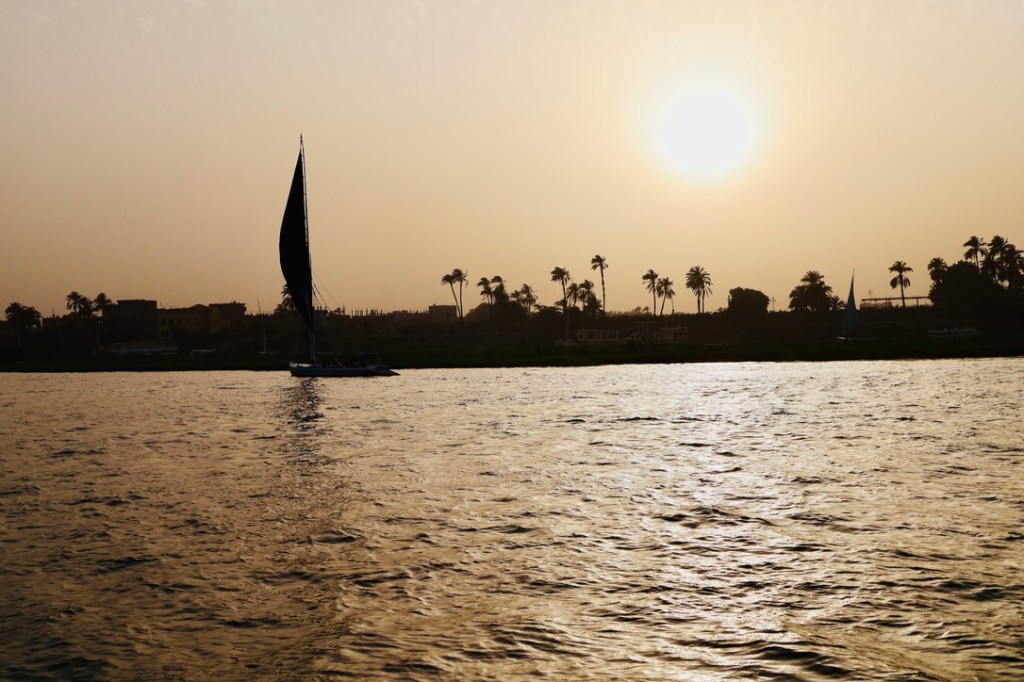 The sun set and we started to make our way back to Luxor. Sadly for our ‘captain’ (a kid who can’t have been more than 20, with his ‘first mate’, aka little brother who was clearly very much still learning the ropes) the cool change went through and the wind died, leaving us adrift floating slowly north past the hotel and unable to moor. We settled in for our elongated cruise as our captain made a slightly embarrassed call to a friend with a motor boat, who eventually came and rescued us with a tow back to port.