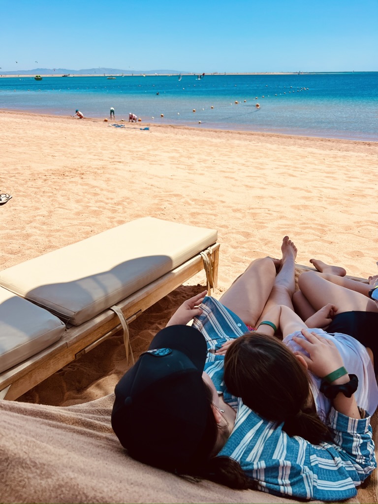 We ended our Dahab holiday with a lovely 45 mins of so just hanging out as a family in the pool. I’m not sure how many other families get to have cuddles in the pool with their teenage and almost teenage girls still, but we seem to have hit the jackpot there, and we absolutely don’t take it for granted.