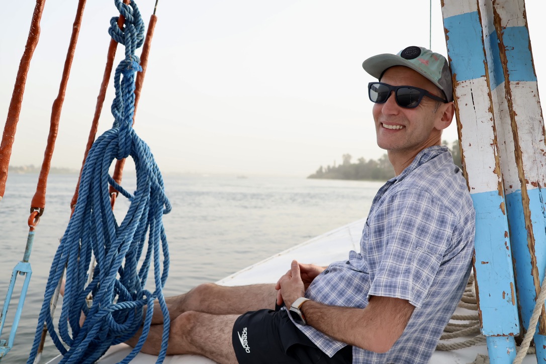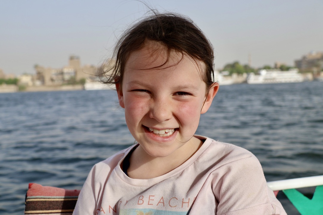 That afternoon a ’cool’ change came through, bringing 60 km/h winds and a 15 degree temperature drop. Perfect for our planned sunset felucca ride. Liz opted out, Ant and the kids braved it and were rewarded with lovely views as the felucca made its was south from Luxor, happily managing the high winds. The sunset was stunning, and we could feel the tension from the challenging couple of travel days drain away. Nothing like a boat ride to help you relax.