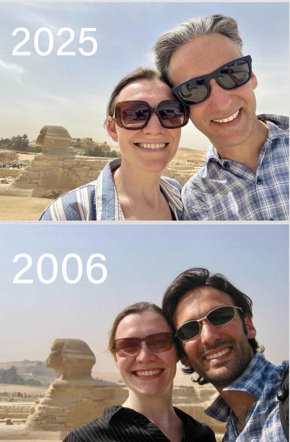 From there, we got to see the Sphinx and tried to recreate a photo from the last time we were here together in 2006 (the last 20 years have been hard on the sphinx, its really sad to see. She must be looking at us with envy).
