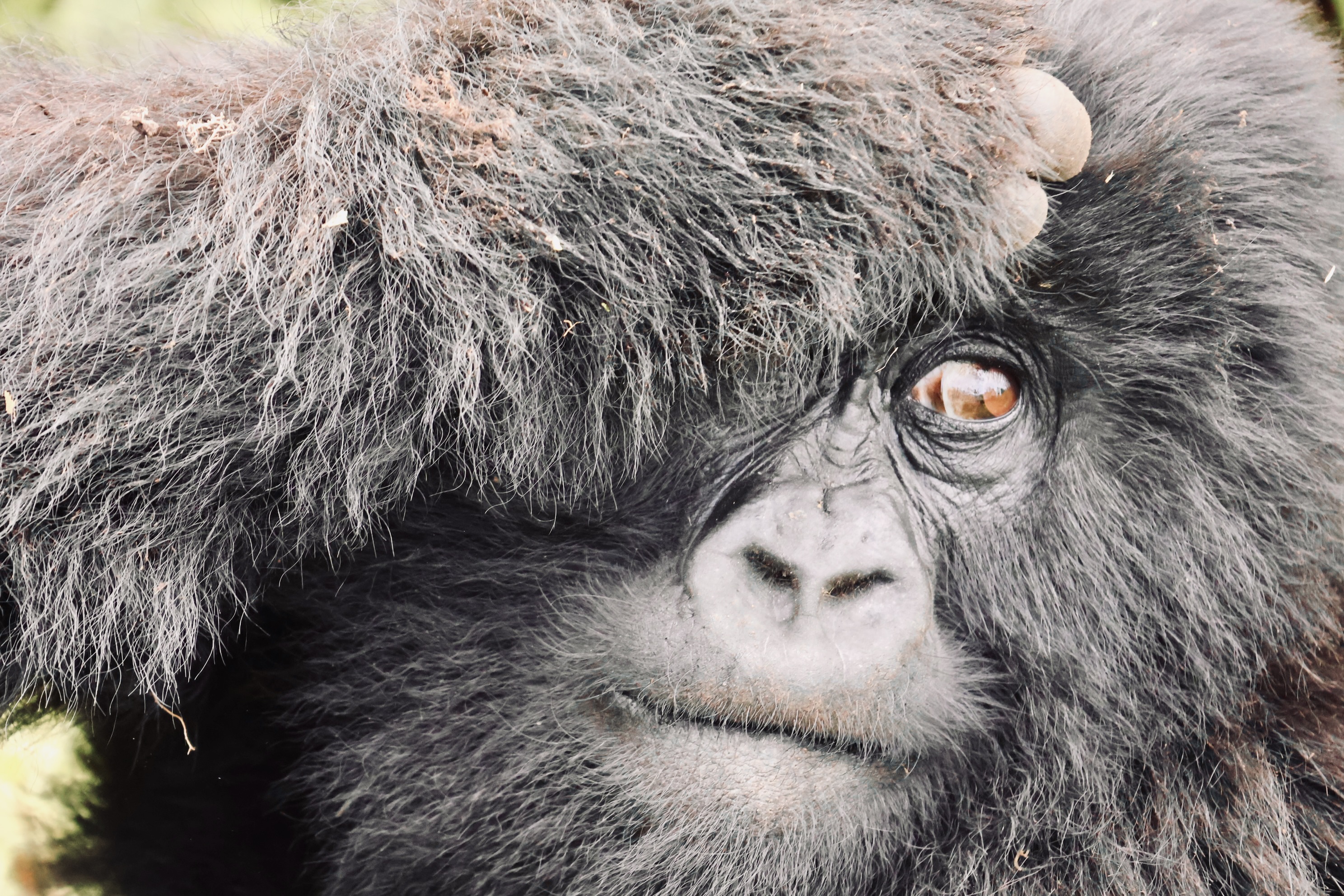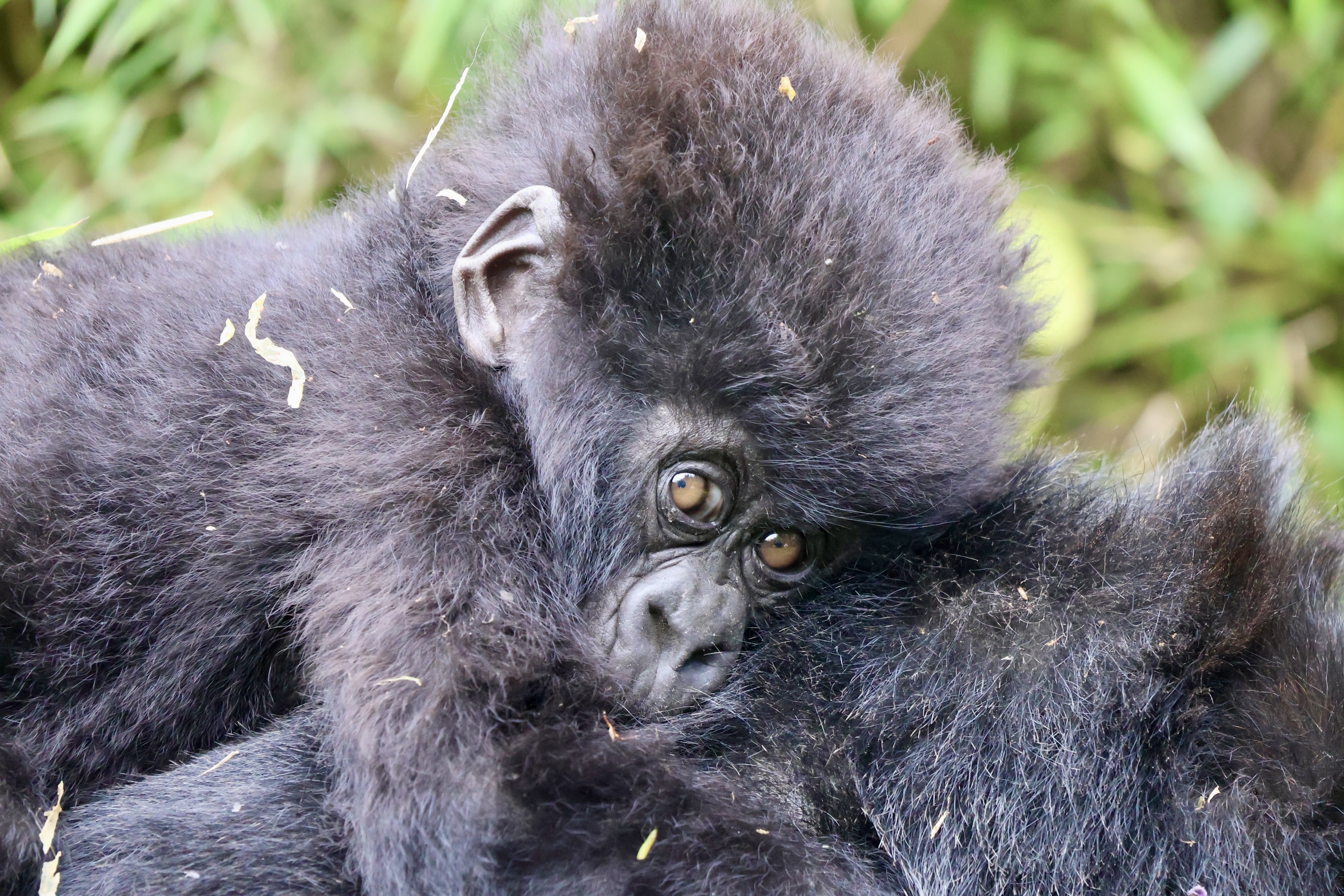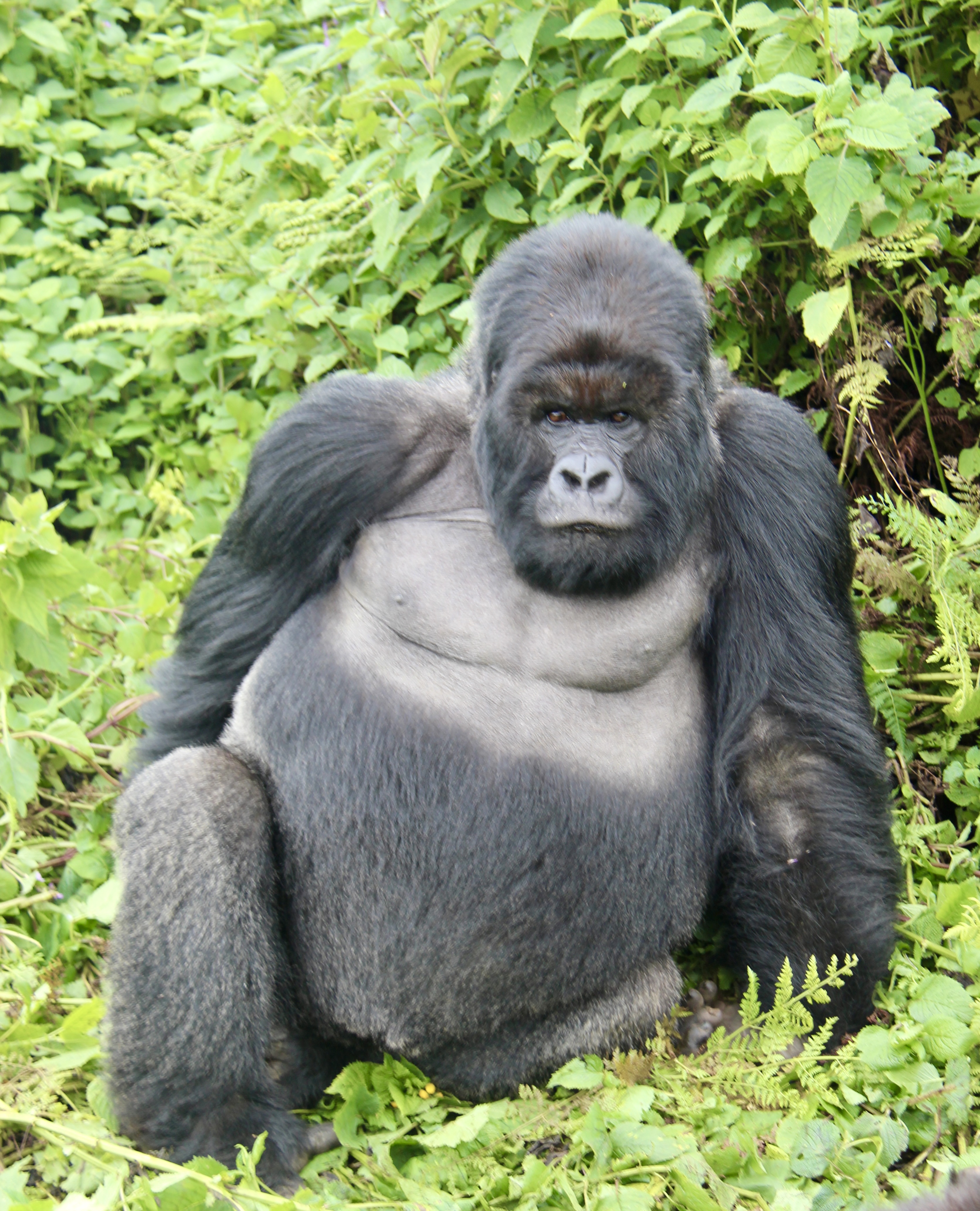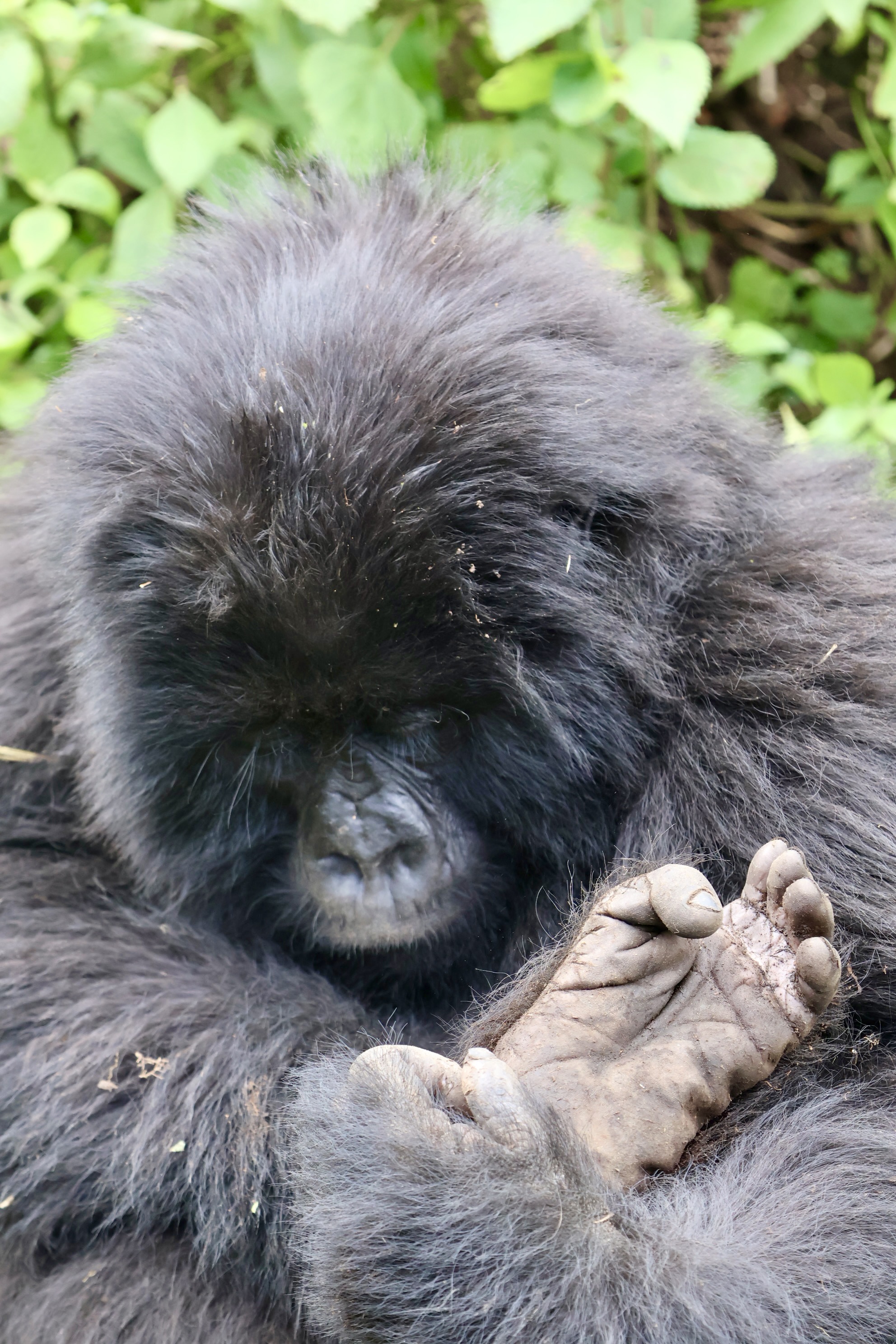 Within minutes we had some of the family pushing passed us to get their next location and we had adolescent gorillas rolling Kung Fu Panda style (why walk when you can roll?) passed us for no apparent reason. The silverback ambled passed, looked at us, then lay down for a snooze within feet of our group. At one point, one of the gorillas walked past one of our group and gave them a bit of a slap on the leg.