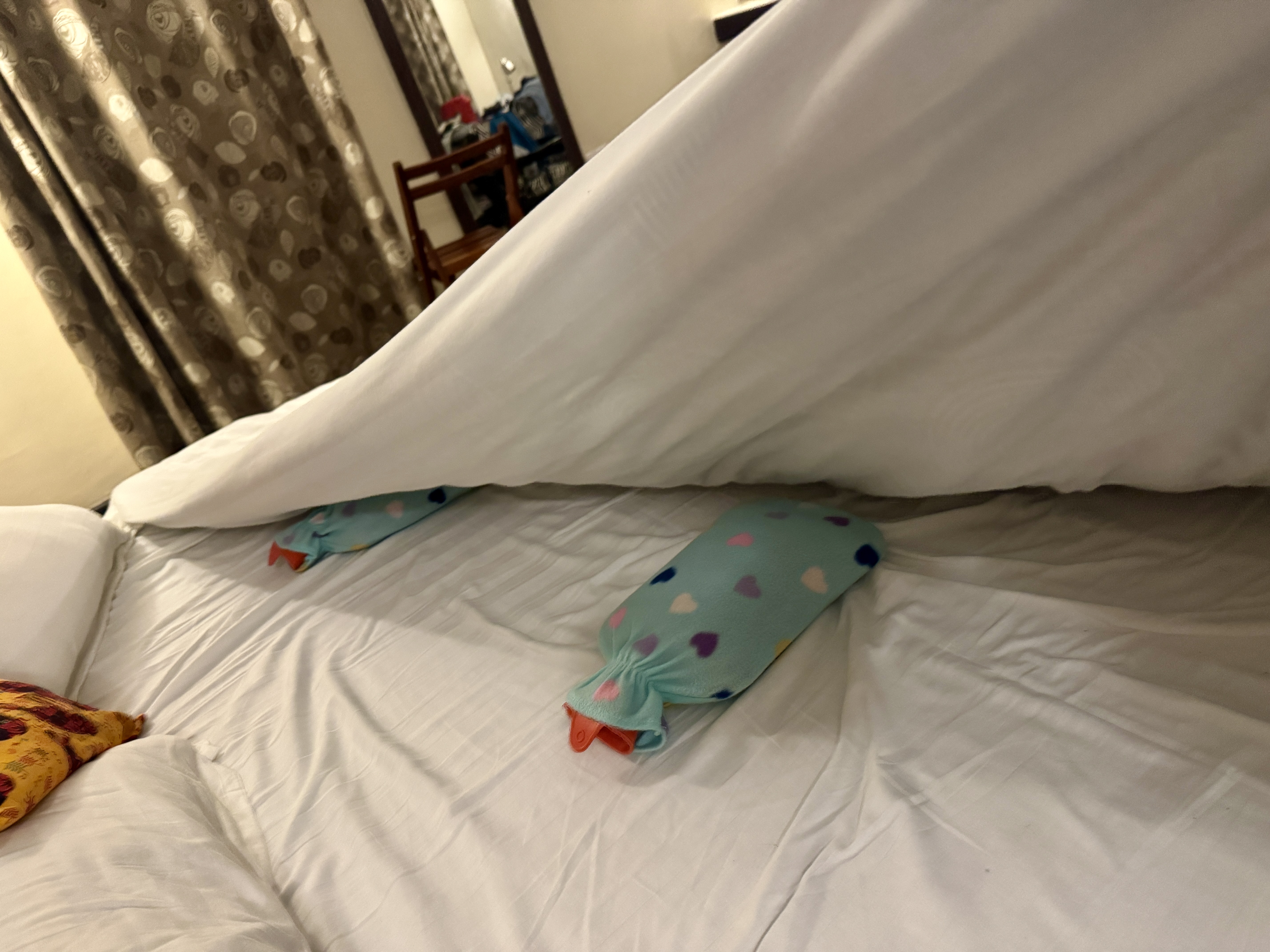 After dinner, all of Liz’s dreams came true when we returned to our hut to find a fire going and 2 hot water bottles in her bed.