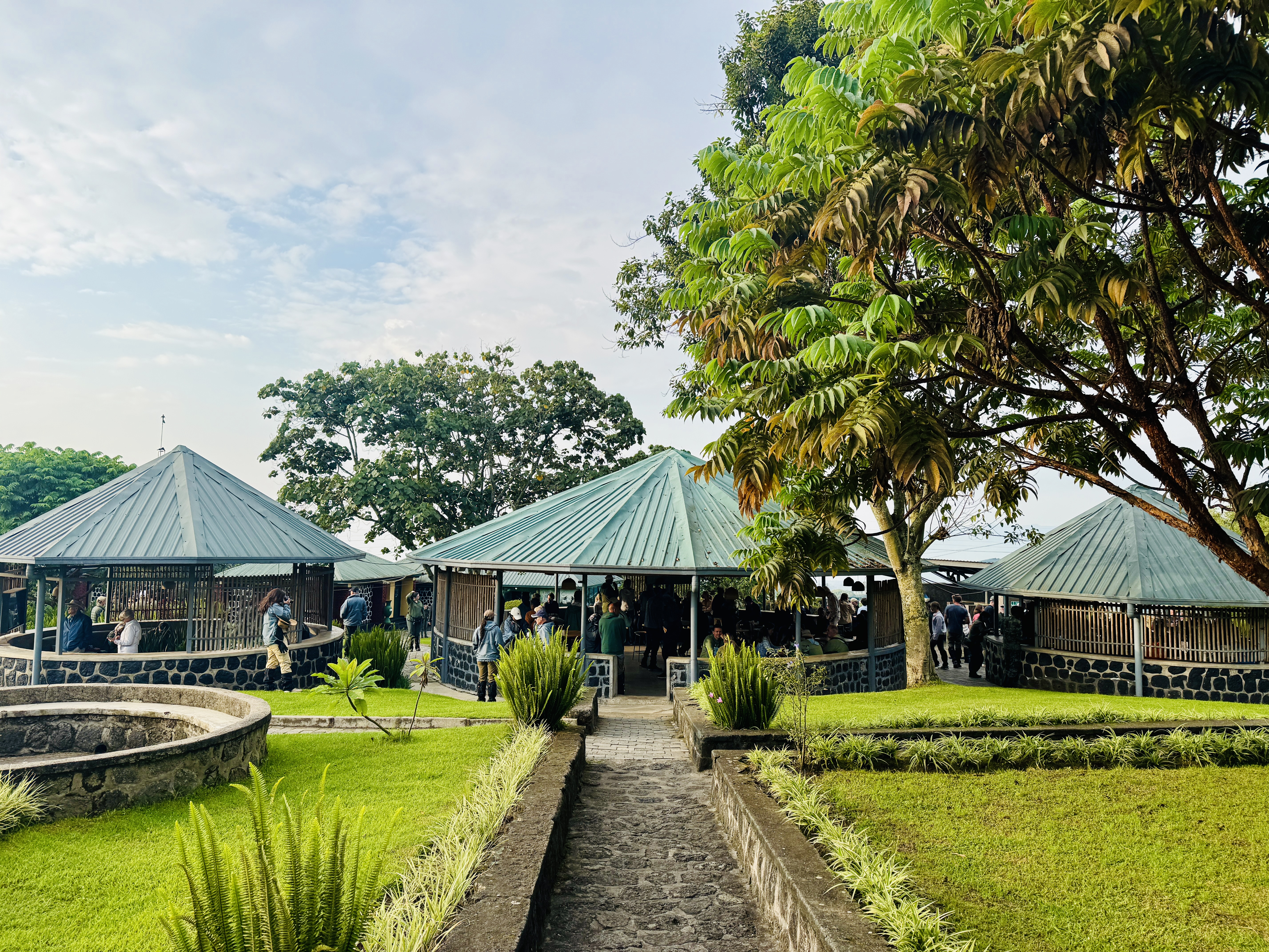 We arrived at the welcome station for the monkey and gorilla treks around 6.30am and were the first group to arrive. The welcome station itself was spotless, with little huts set among manicured gardens and including a coffee station serving complimentary, perfect cappuccinos made with local Rwandan coffee. This was a long way from what we expected.