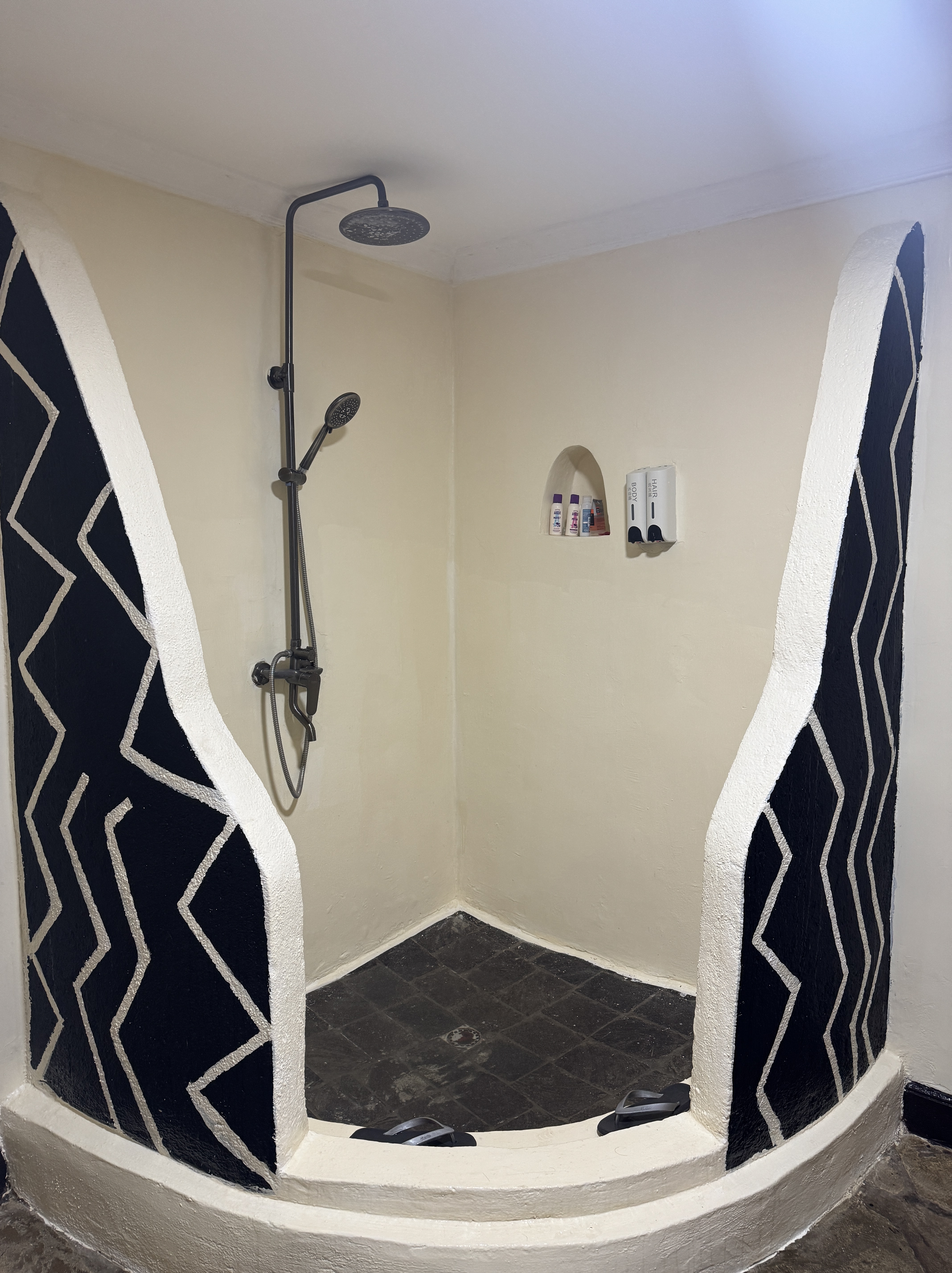 From there we sat to remove our muddy boots and gaiters, and 2 women immediately pounced on us to provide support. Before we knew it our boots had been whisked away for cleaning. We drew the line at the cleansing foot bath and massage that was offered, and instead transferred into some waiting Crocs and went to check in.