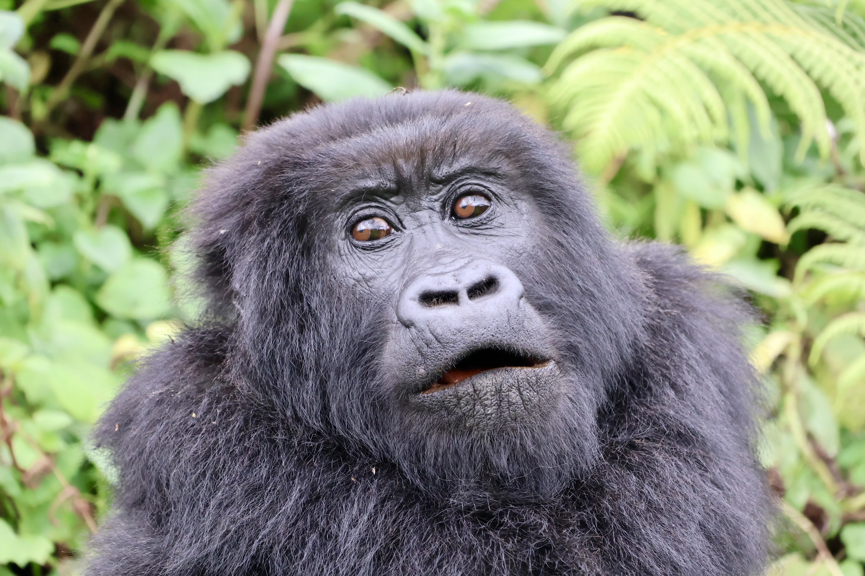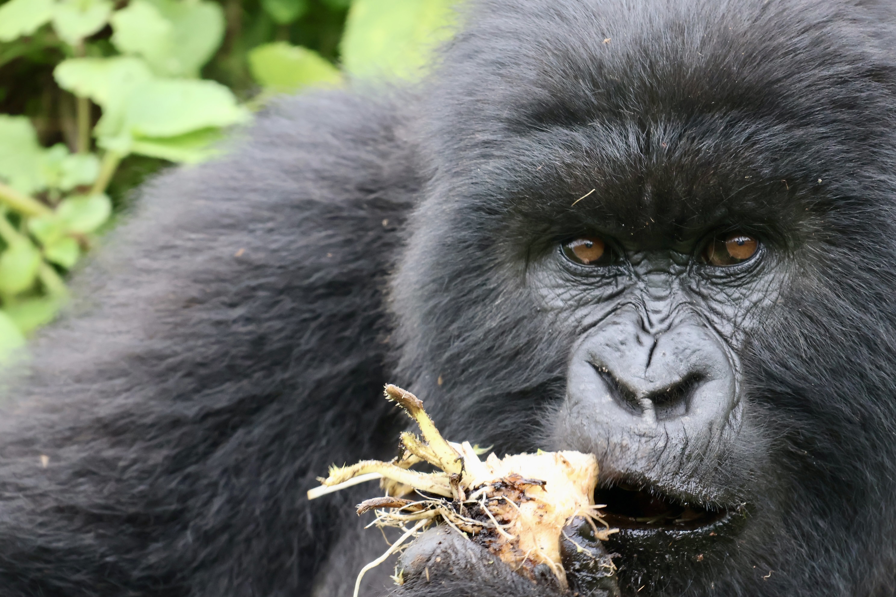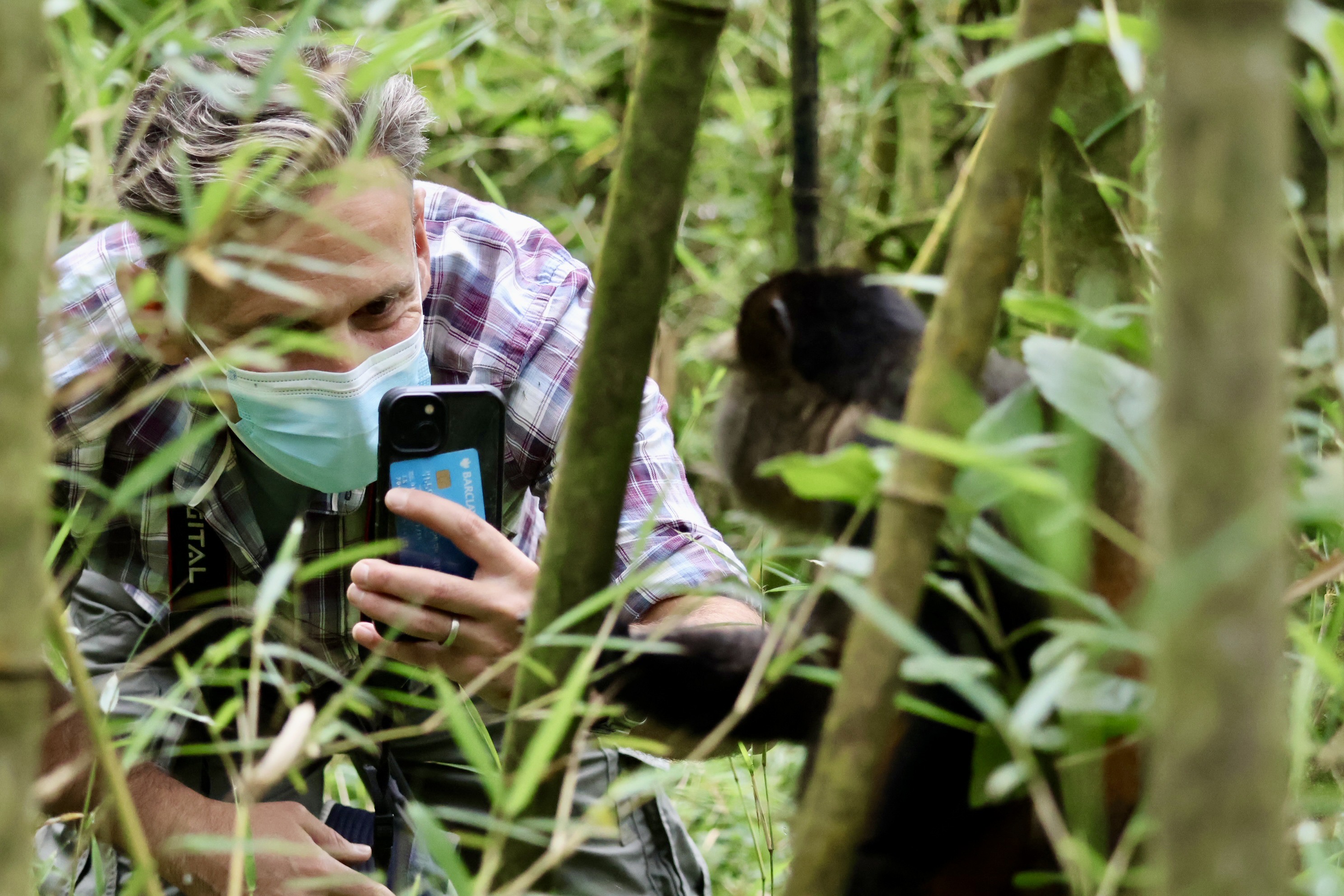 Eventually we dropped our bags, donned our face masks and were given our final briefing. Don’t go within 10 metres of the gorillas. You can look them in the eye, but if the silverback beats his chest, don’t beat back (seemed sensible).