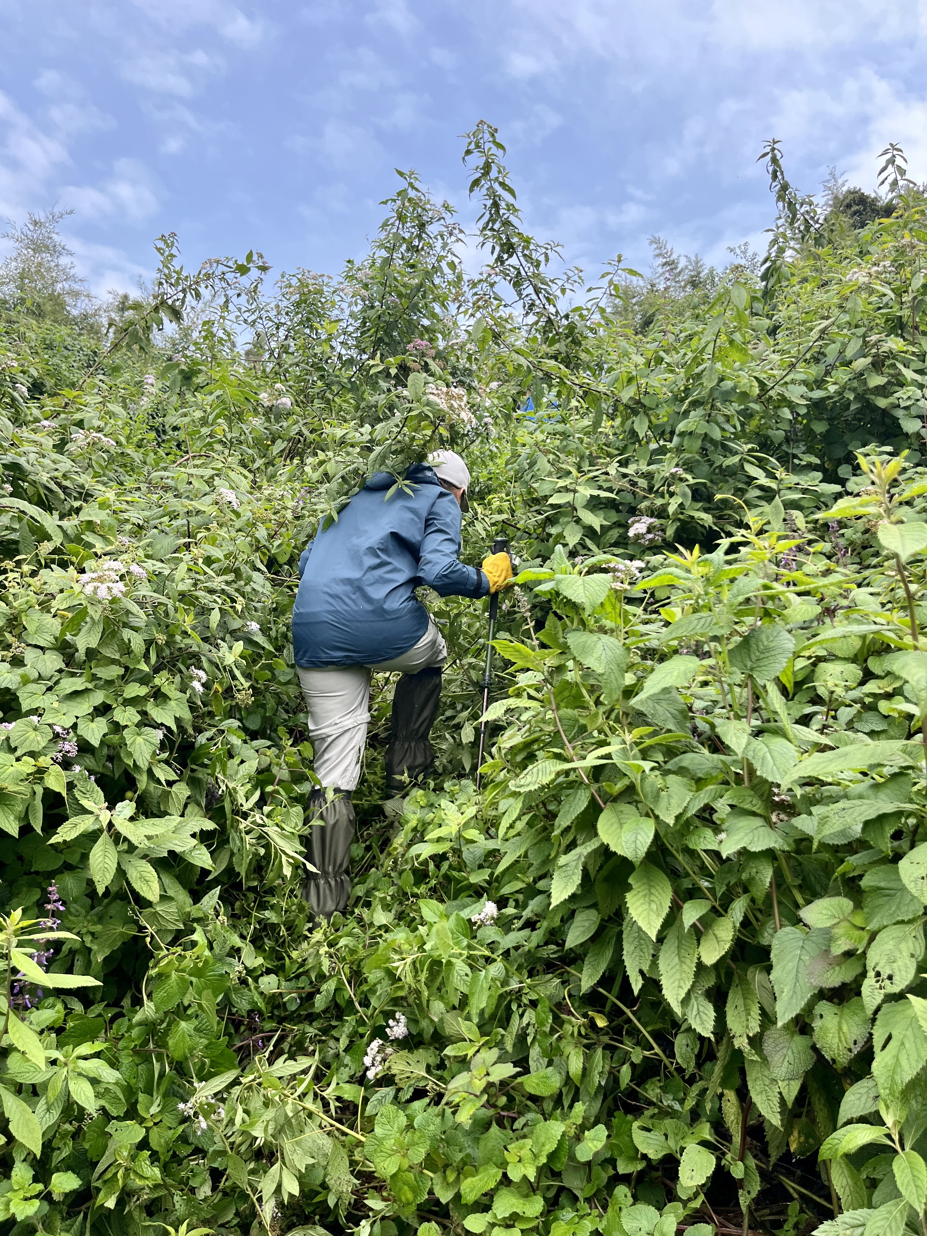 Before long, however, the trails got steeper and the undergrowth got thicker. Our trail finder got busy carving us a path with his machete and the gloves and gaiters came into their own. Only the mosquitos didn’t really eventuate – maybe because of the sheer quantity of DEET that I’m sure was smothered over our entire group.
