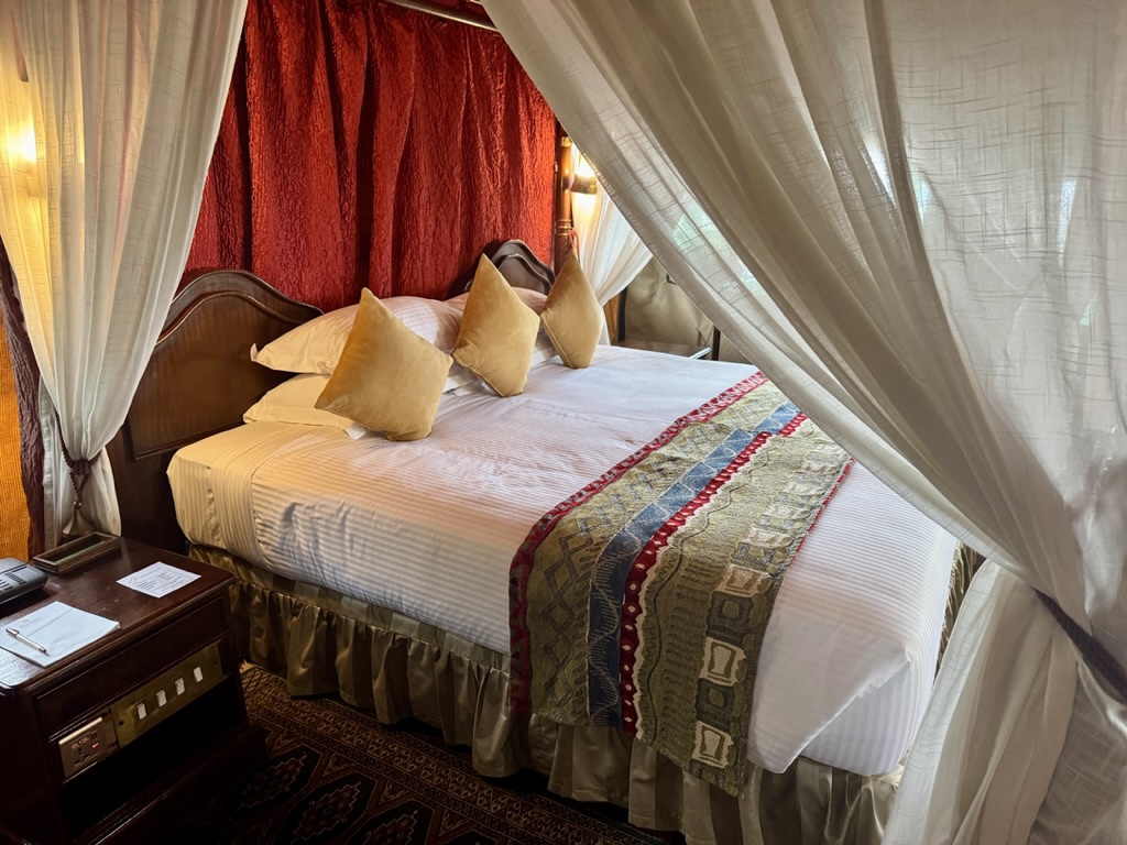 Fair to say we were trashed when we arrived at the beautiful Serena Kirawa bush camp that night. We were greeted by the now expected over-the-top service and made our way to our tented ‘bush camp’ – complete with mosquito net-covered 4 poster bed (because why wouldn’t you have a 4 poster bed in the middle of the outback?). Everything about the place felt like a call back to colonial times (more internal cringing).
