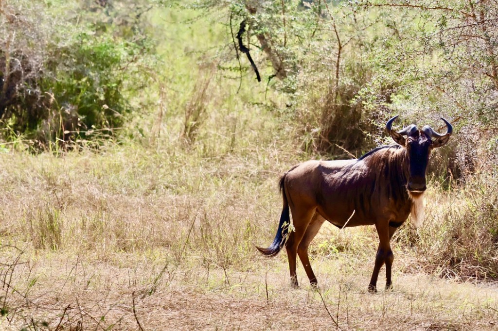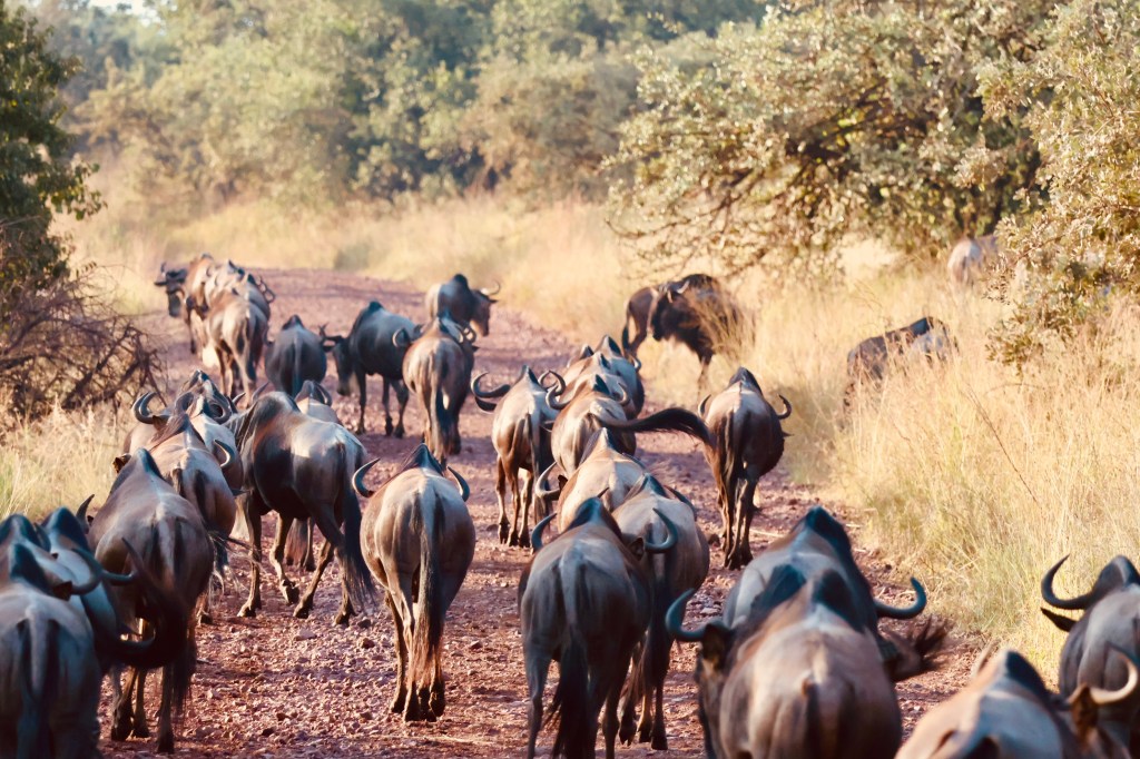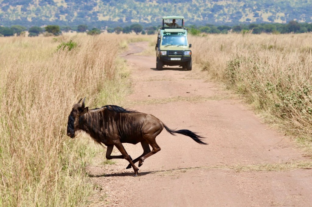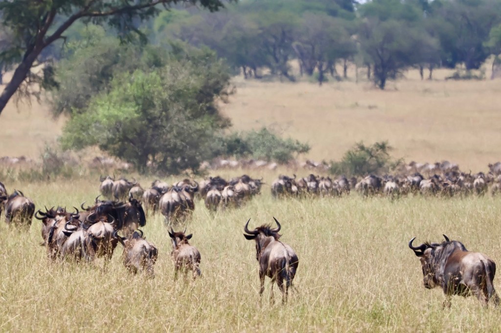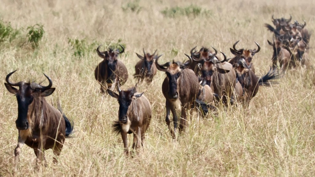 Then we saw them – first a couple of wildebeest walking with purpose in parallel to our road. Then we saw it was part of a column, and the column went on like a freight train from hundreds of metres. Thousands of wildebeest heading north with purpose (and, to be fair, a couple of more rebellious ones heading in the other direction).