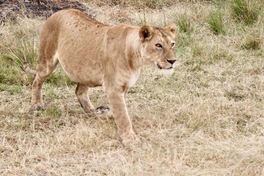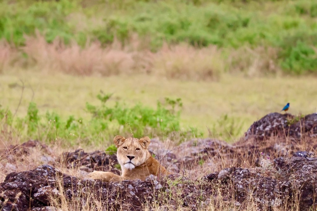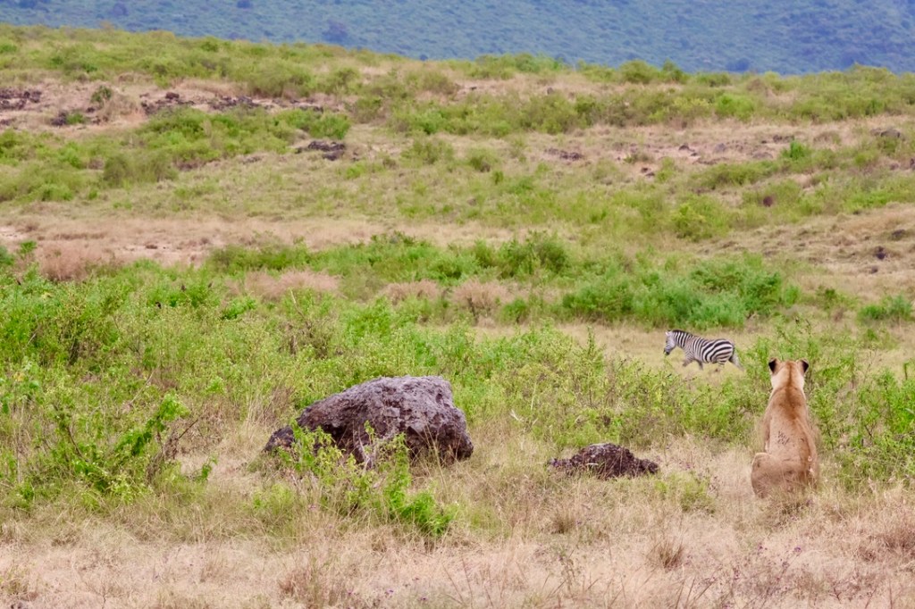 We were then treated to one of the most special parts of the trip so far, as the female lion woke up and spied a zebra in the distance. She then proceeded to study it, stalk it briefly and then decided that she wasn’t that hungry anyway and went back to her rock.