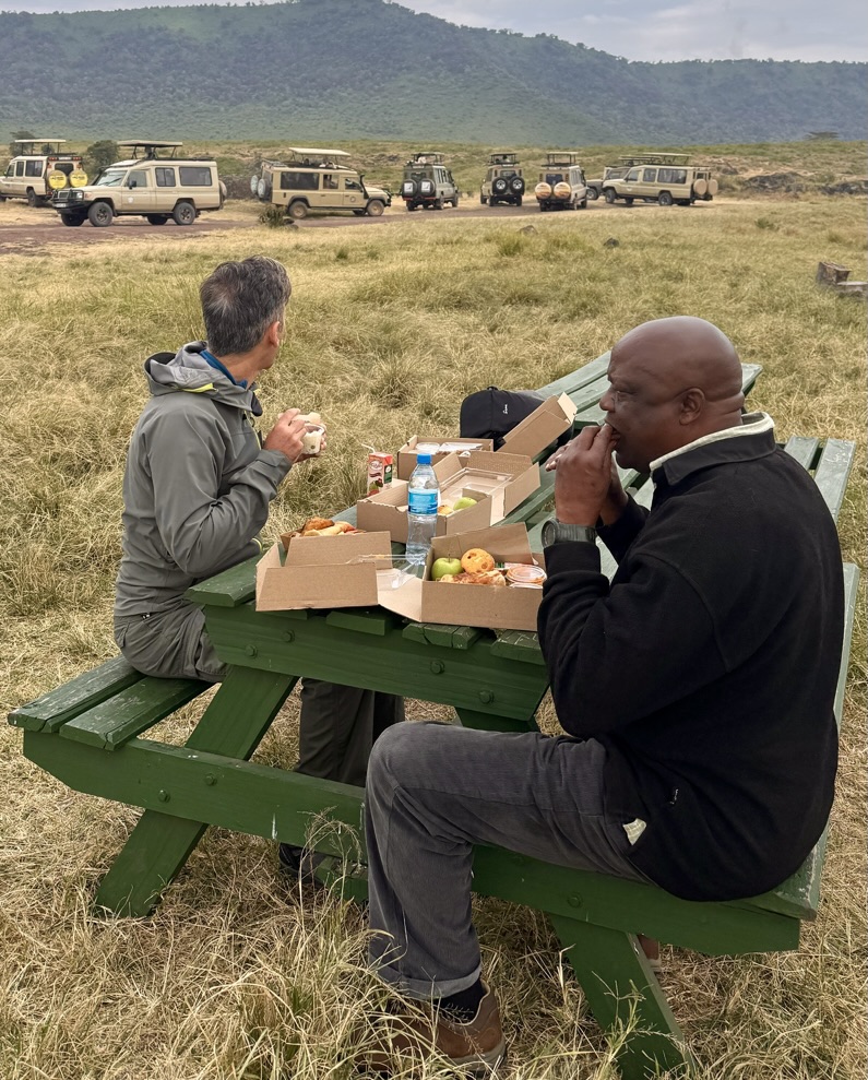 It was then time for a late lunch, so we pulled in to one of the picnic spots in the crater and pulled out our packed lunch boxes. We noticed that most others were not out of their vehicles, we asked why.