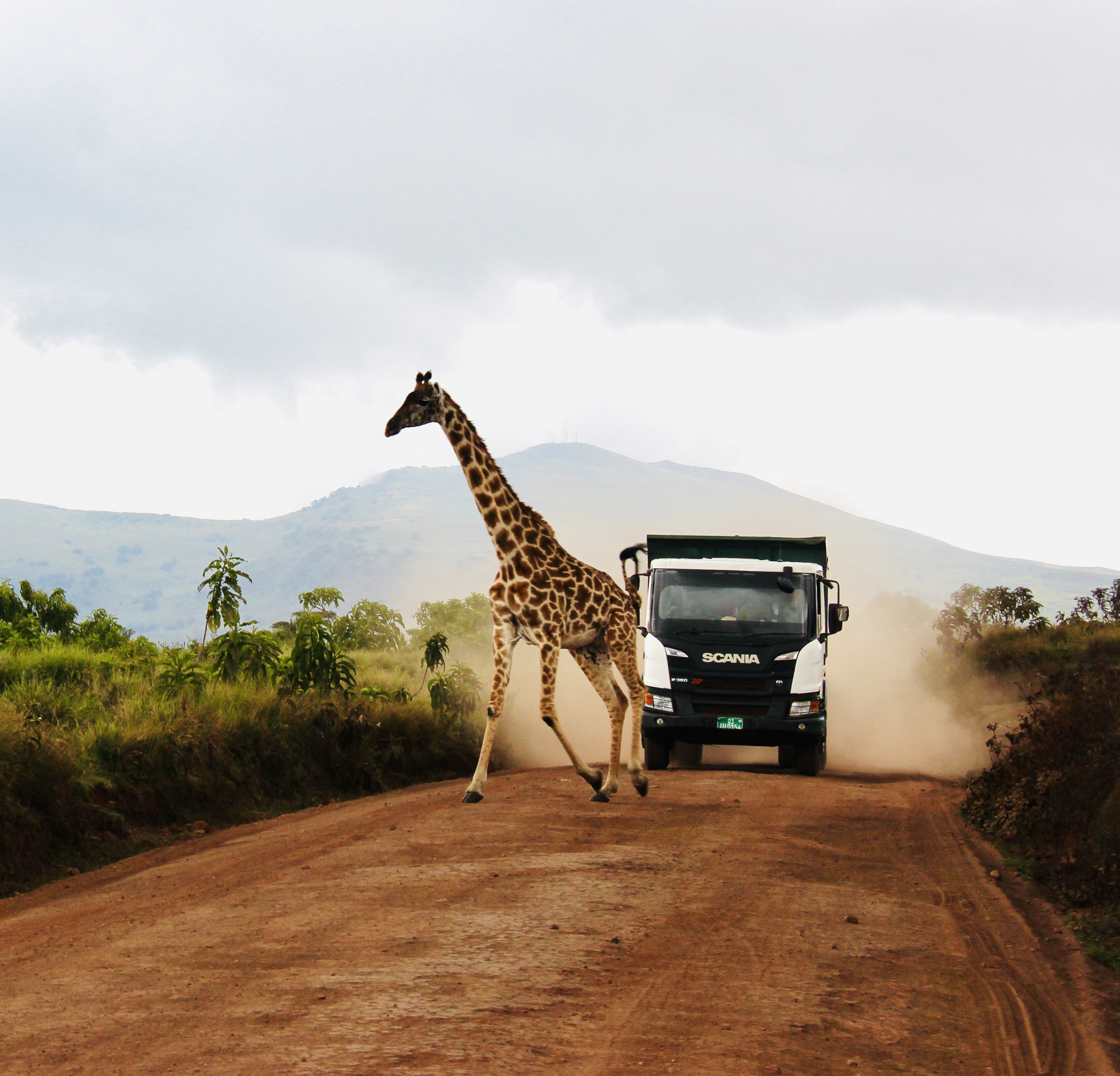But before we could get in, we needed to bounce around half of the 62 km long track that circumnavigates the cater to get to one of the two descent points off the rim. On the way around we literally almost ran into a group of giraffes – the one animal that we knew we wouldn’t see in the crater. It was an incredible start to our sightseeing.