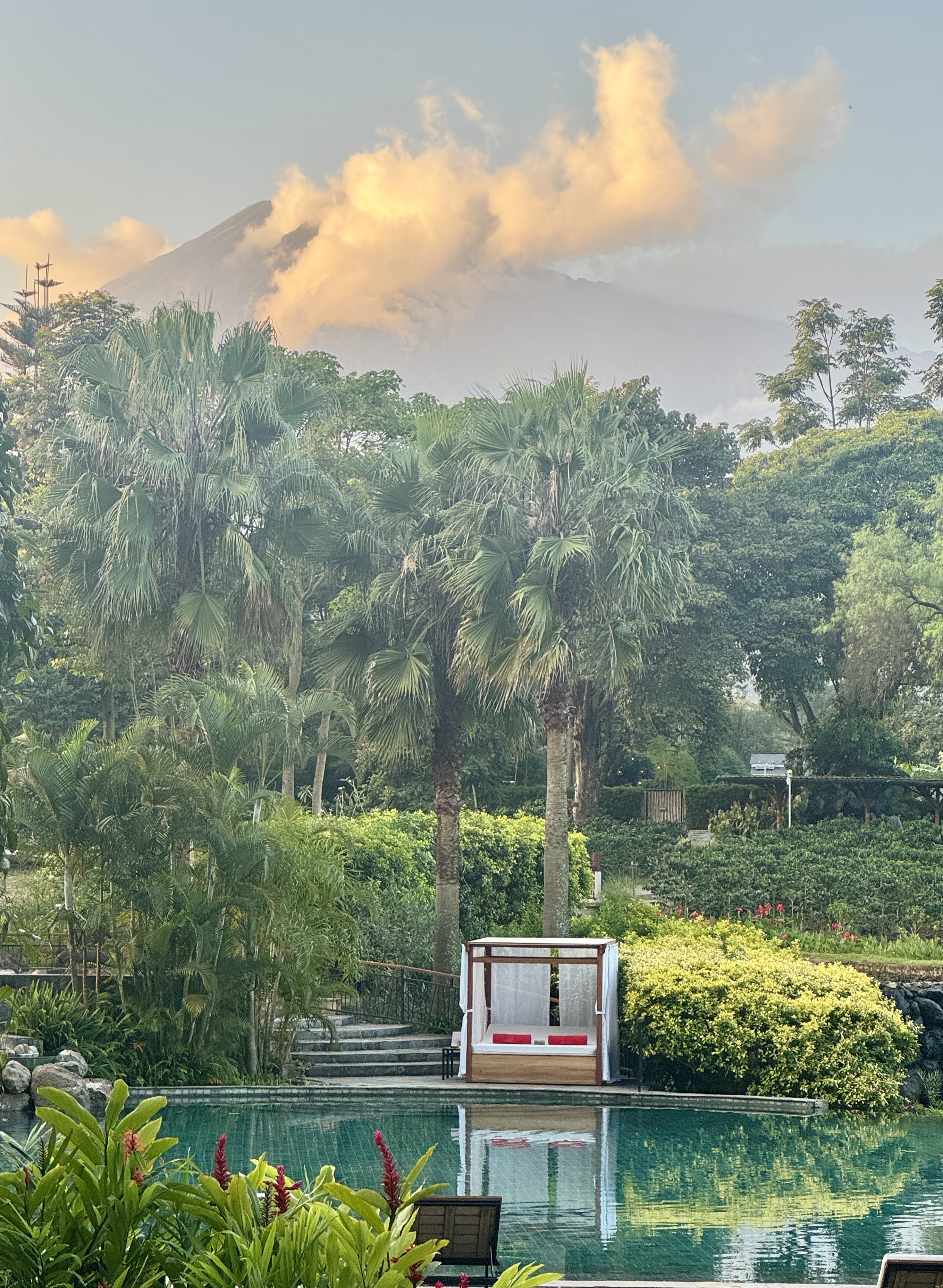 We eventually arrived at our accomodation for the night – the ridiculously oppulent Gran Melia with it’s beautiful gardens, enormous swimming pool and views over Mount Meru volcano.