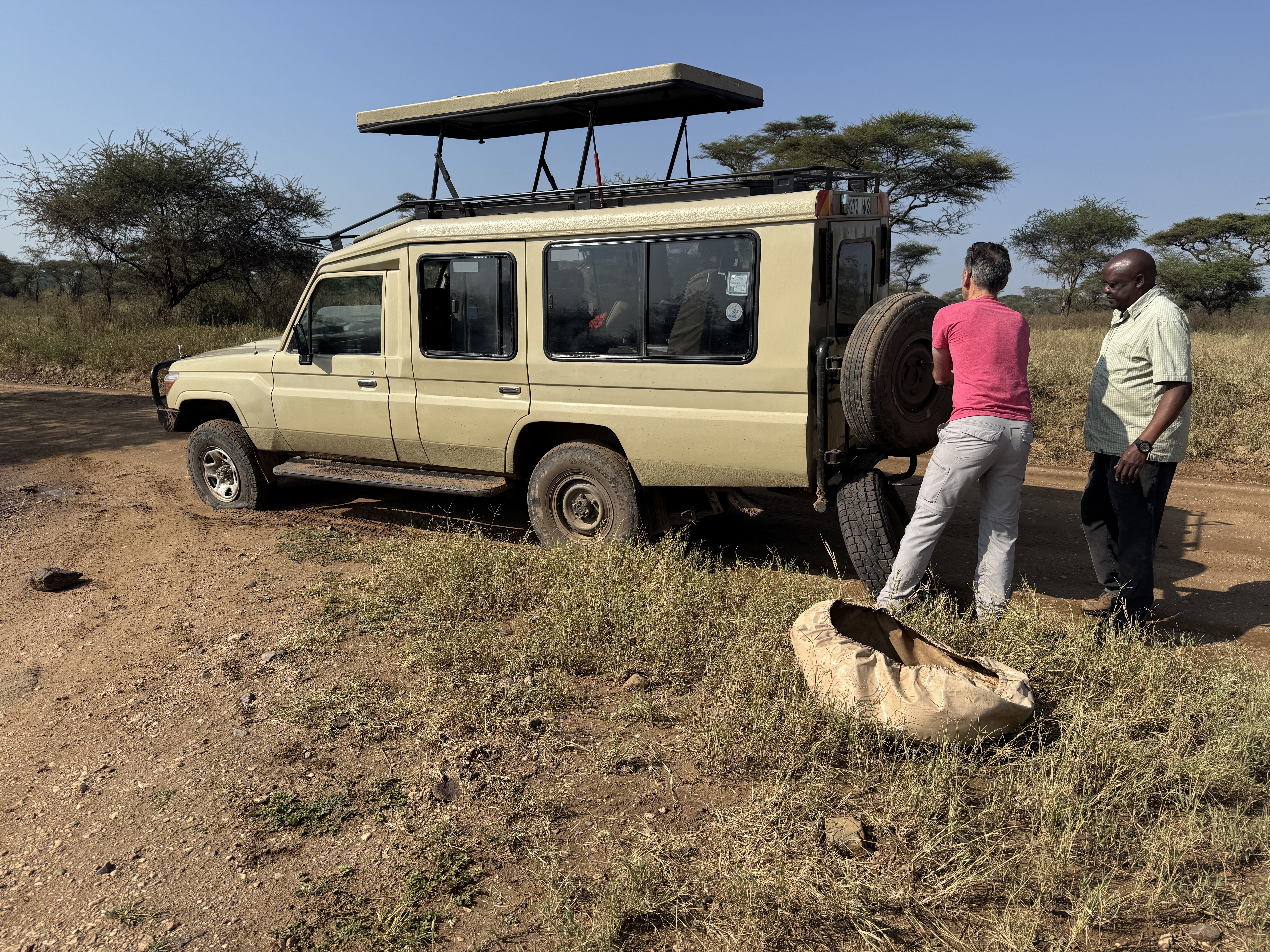 We were up early again for our last morning and on the road by 6am – still dark. The question on everyone’s minds, of course, was whether the car would make it the bumpy, 3 hour drive back to the Seronera Airstrip, and would Malles?