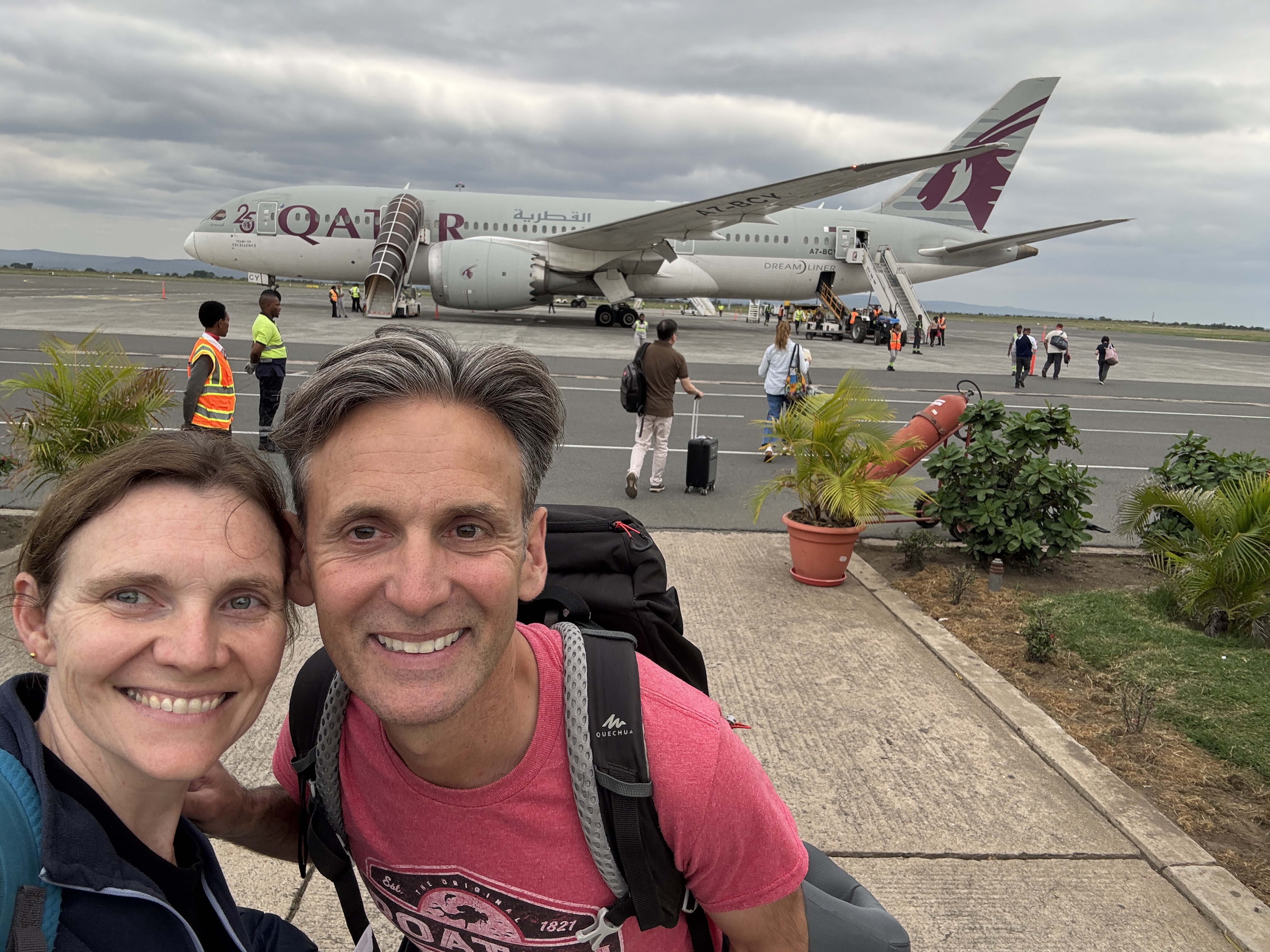 The clock ticked. We fidgeted nervously. Eventually the buses arrived and we drove to the very edge of the airport, some 15 minutes from the terminal to find our solitary plane sitting like the lone giraffe we spotted on the Serengeti plain some 30 hours ago. It already felt like a lifetime ago.