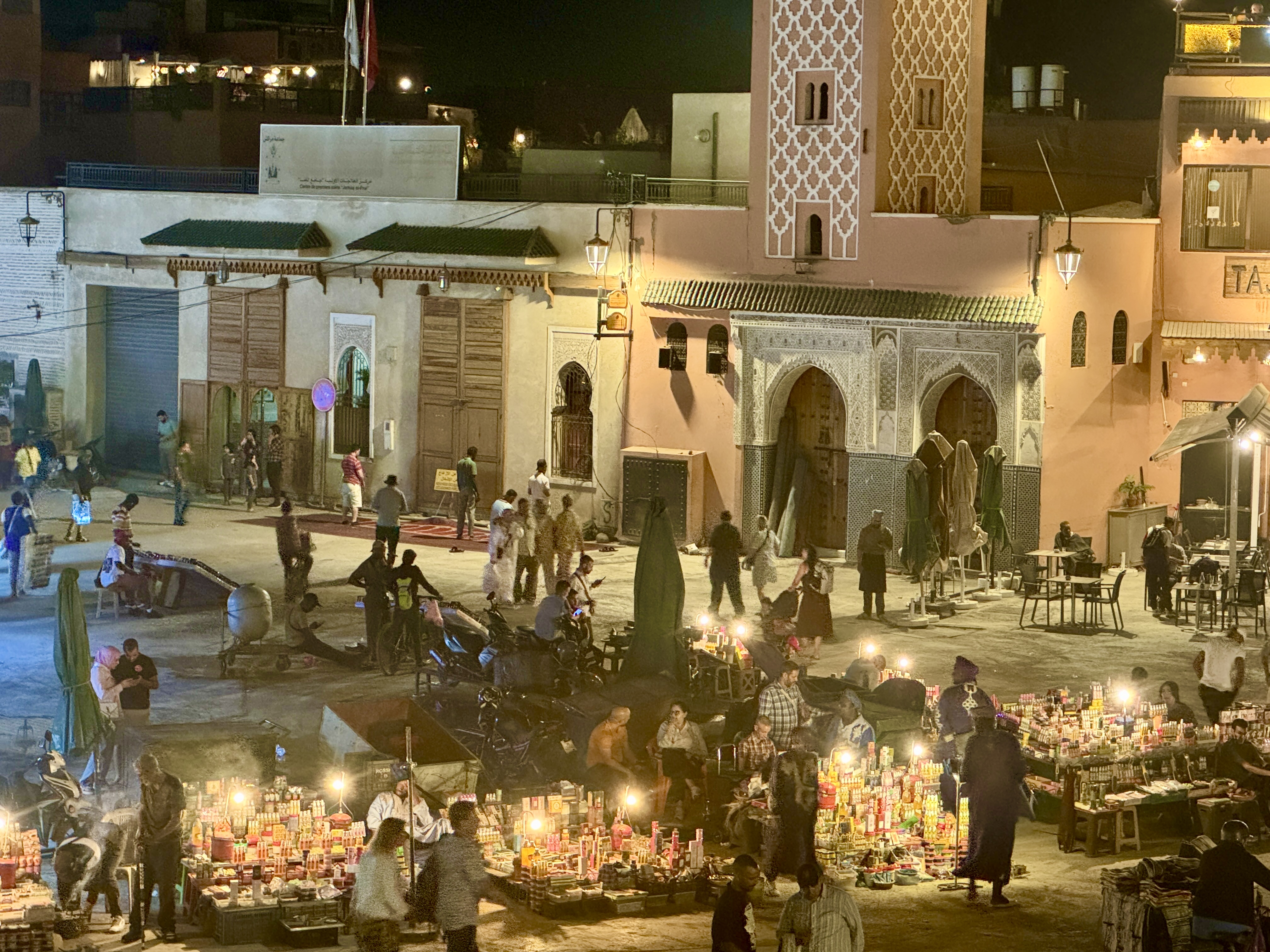 So easy. Despite some pretty lengthy entry queuing, we were still in a taxi and at our Riad overlooking the main Jemaa El Fnaa square before 11. This leaving on Friday night thing was clever.