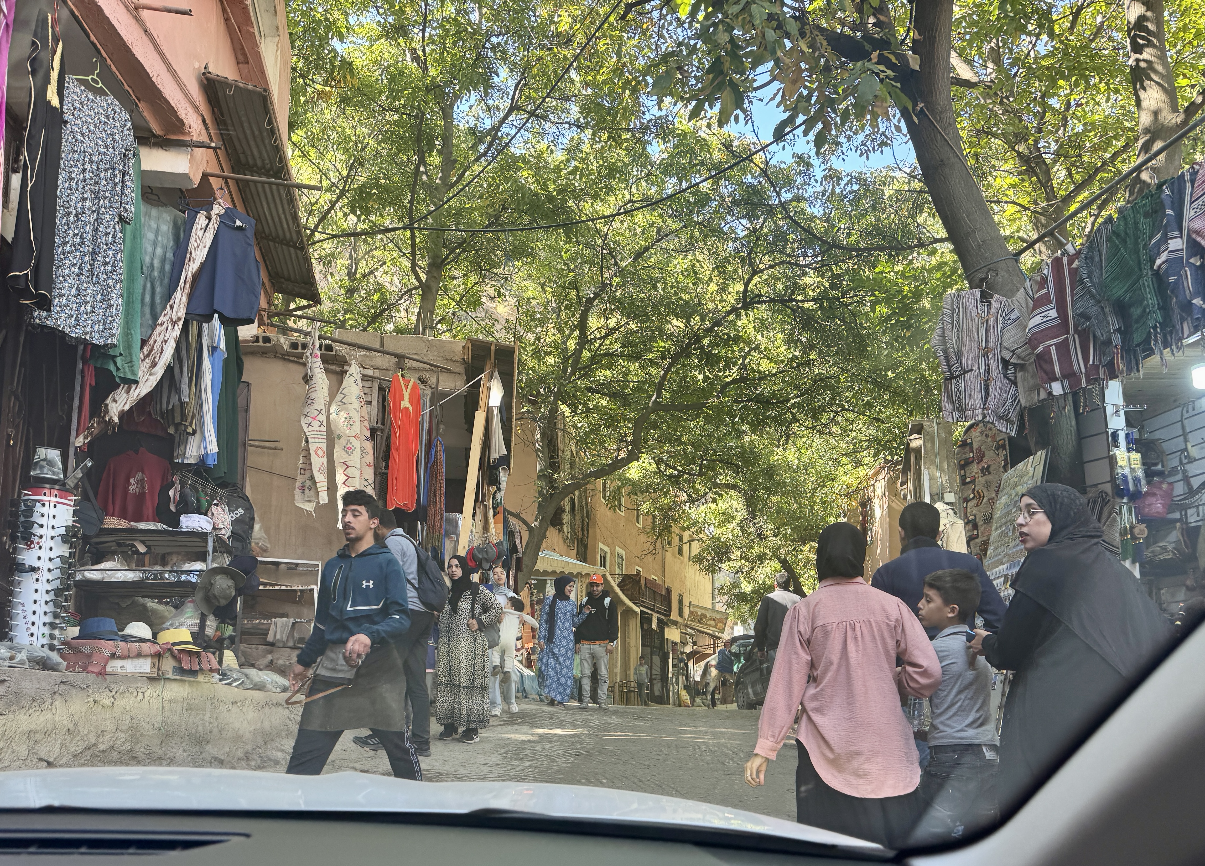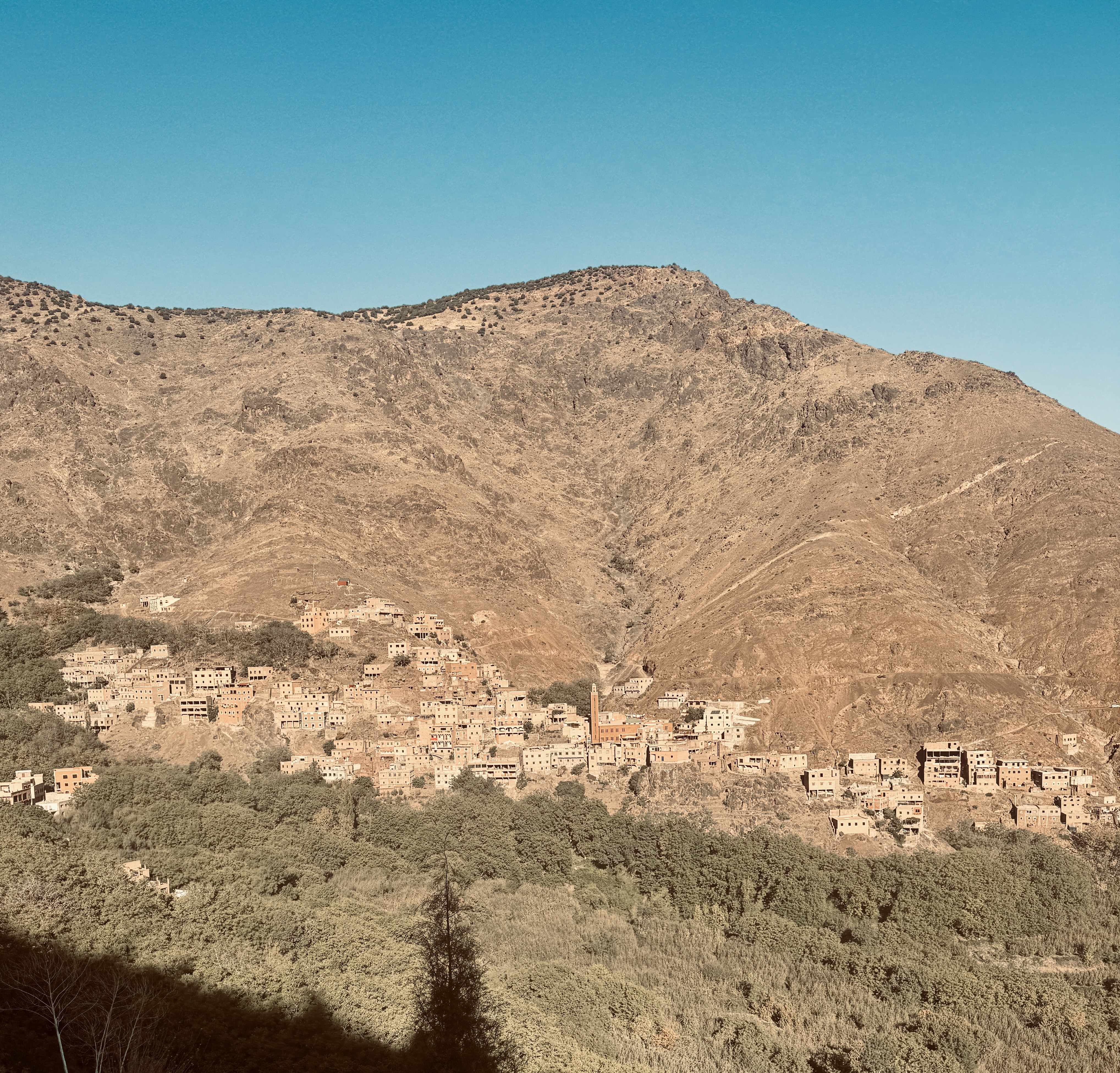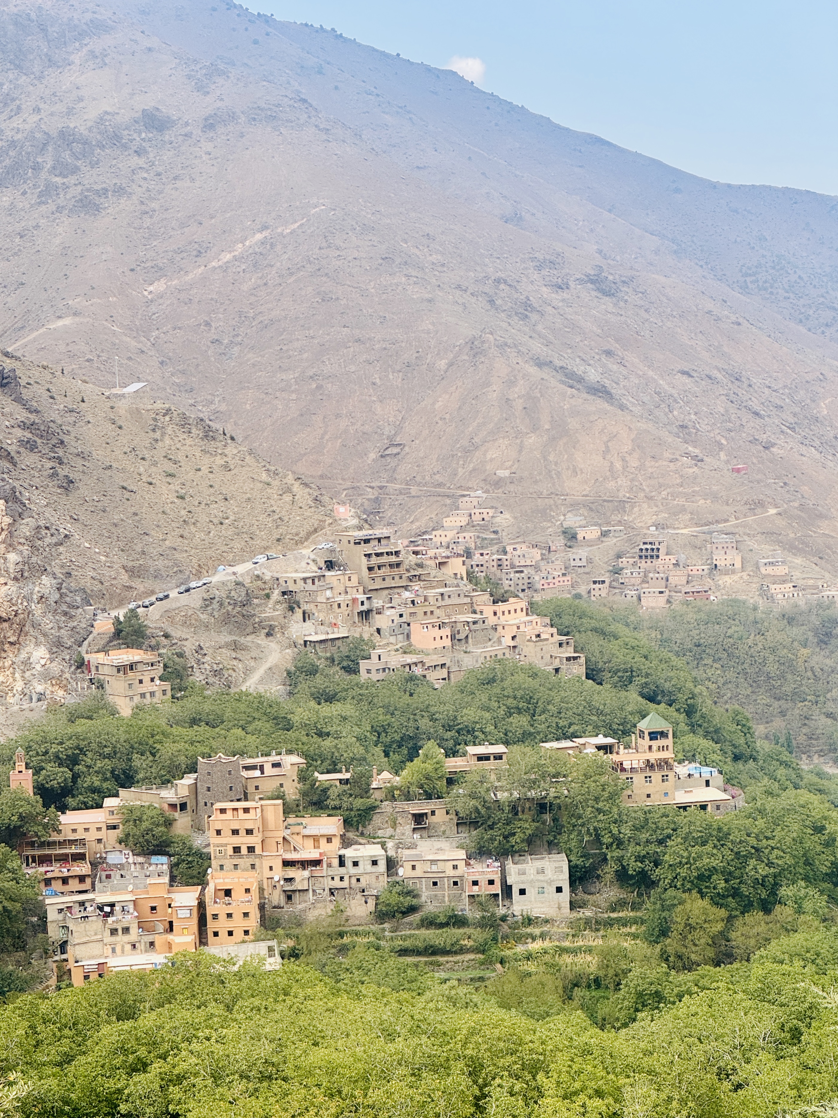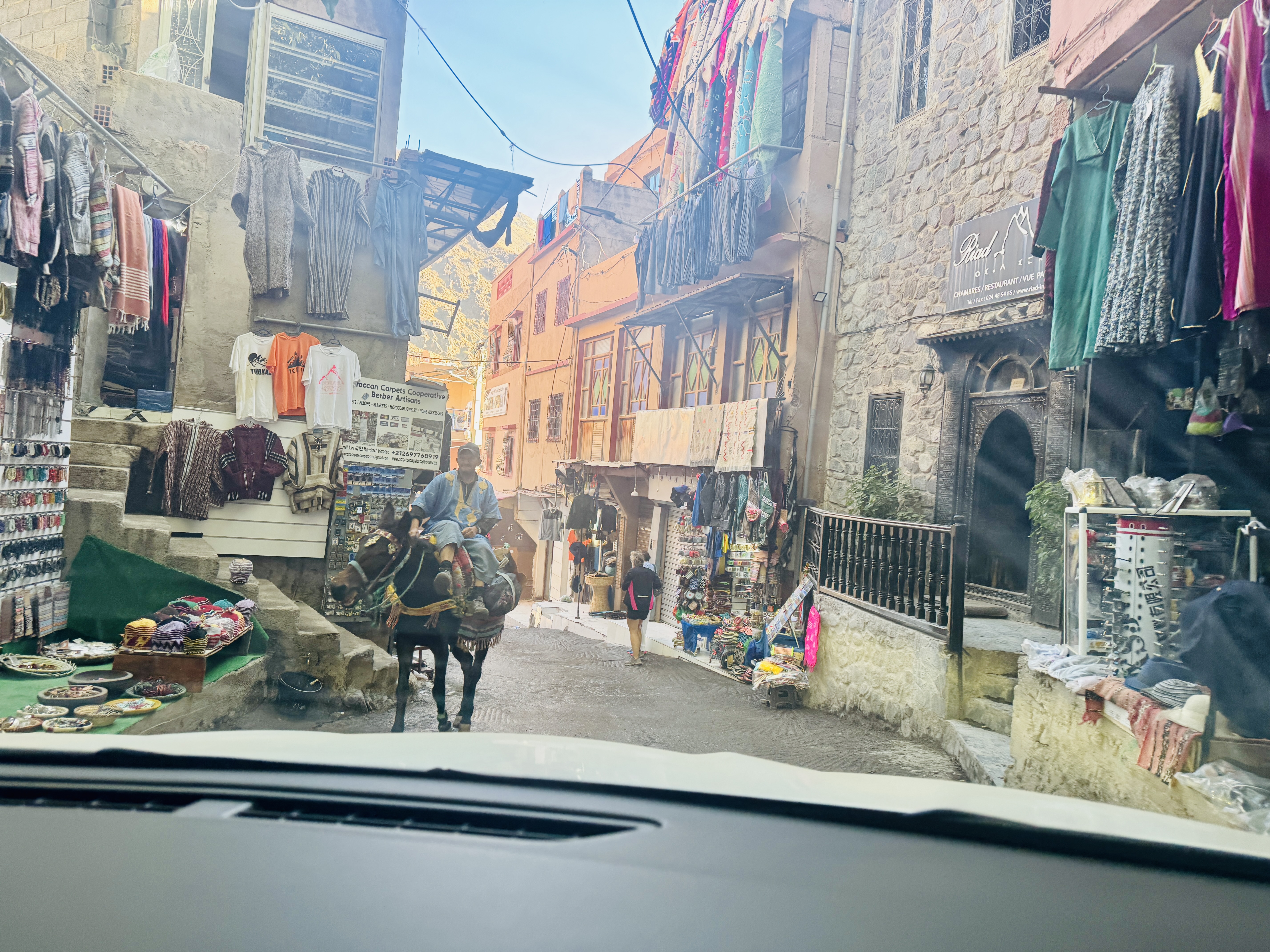 We navigated back down to the busy village of Imlil, praying that we woudn’t hit too much traffic on the narrow, treacherous mountain paths. We were mostly lucky, but had a couple of episodes of ‘car Tetris’ trying to pass oncoming trucks and tourist vans on paths meant for mules. Fair to say we were relieved to get through Imlil and onto more ‘normal’ roads.