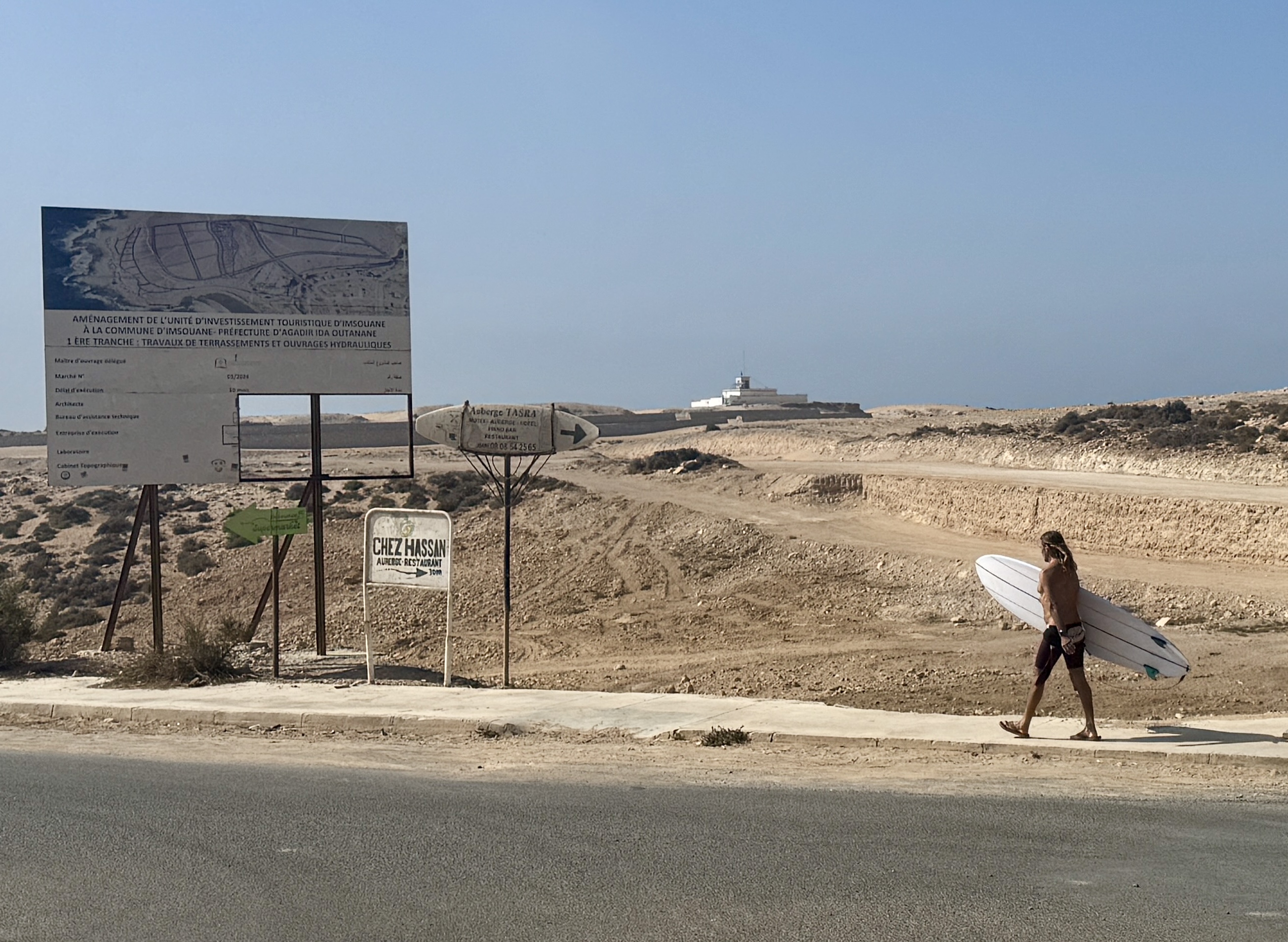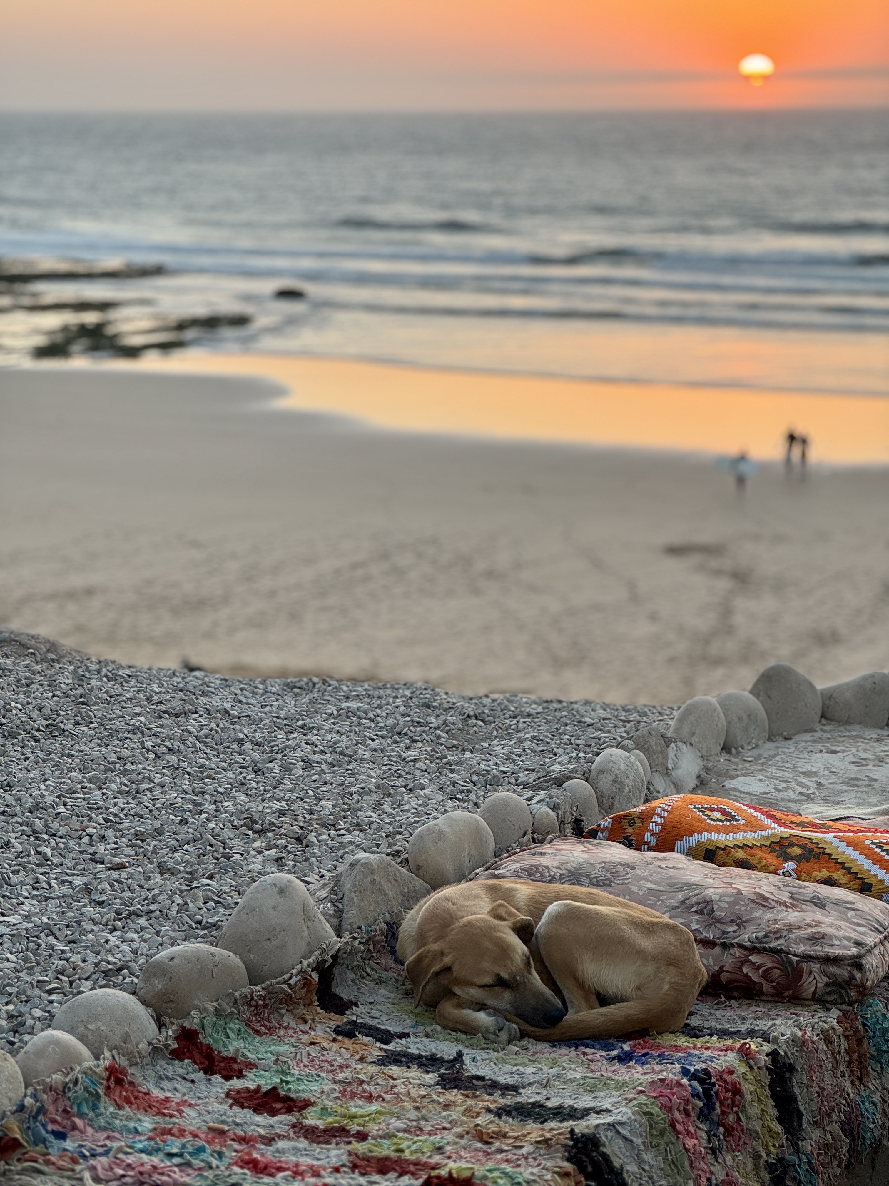 We arrived at Imsouane in the late afternoon. It was a small, run down town with a single supermarket, cash machine and pharmacy, an amazing surf break, and a few hostels and cafes to hous and feed the tourists. It is teaming with dogs (which we loved). Unfinished construction – seamingly abandoned – is everywhere.