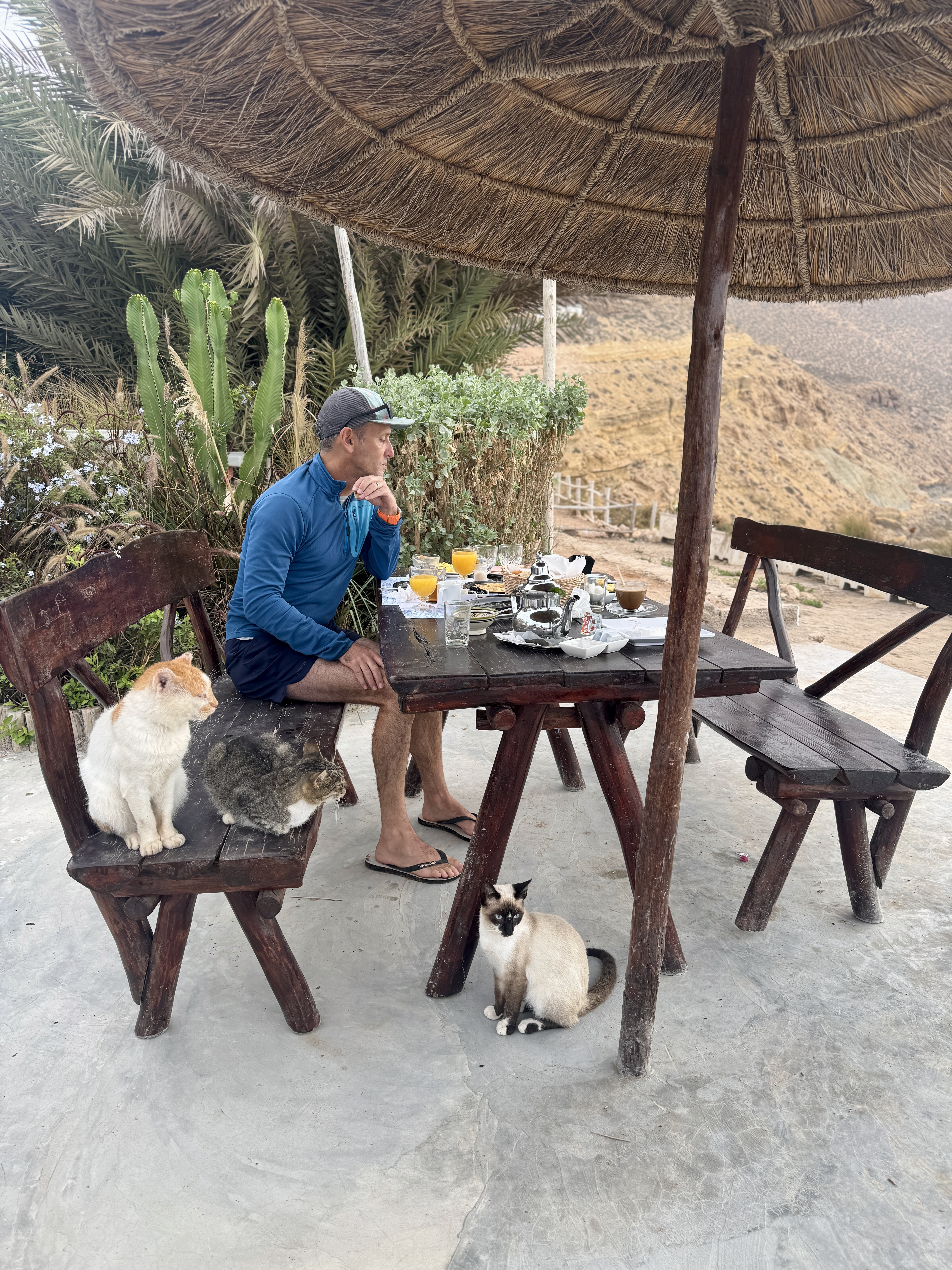 A massive breakfast courtesy of the hotel , shared with the ‘resident’ dogs and 2 cats, including ‘boss man cat’ who clearly owned the hotel.